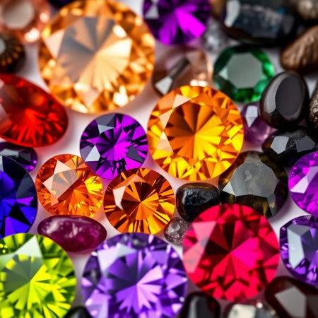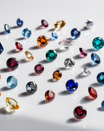 A stunning collection of colorful gems lying on a bright surface, showcasing their brilliance and shadows. Perfect for creative projects and jewelry design inspirations.