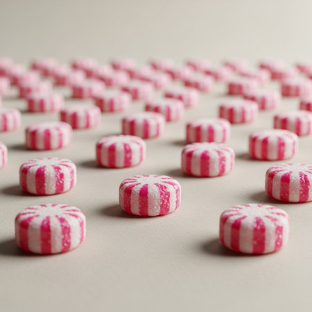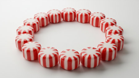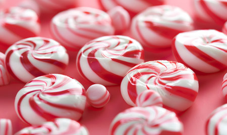 AI Generated. Tiny peppermints in red and white stripes on white