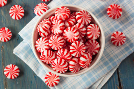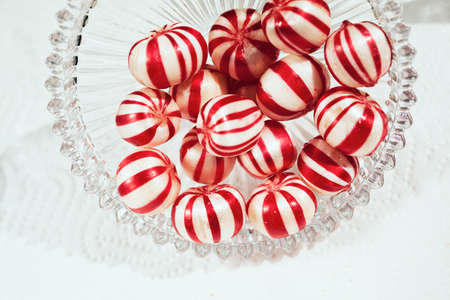 Sweet Red and White Peppermint Candy in a Bowl