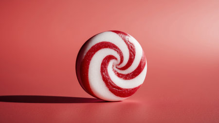 AI Generated. Swirled peppermint candy on a bright red background