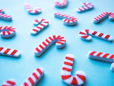 Striped red and white candy canes on a blue background