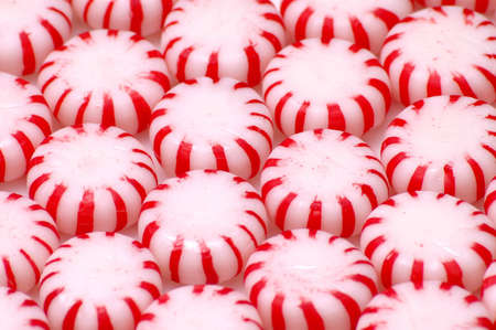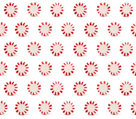 Rows of red and white peppermint candies. Would make a good background.