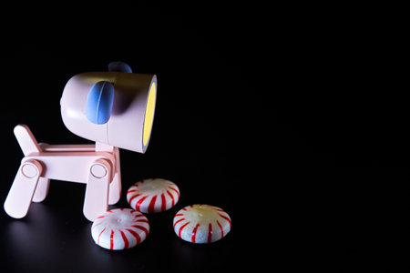 Fresh peppermint candy stacked hard candy black background dog toy with LED light