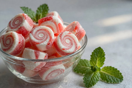 Colorful mint candy bowl filled with sweet and refreshing treats