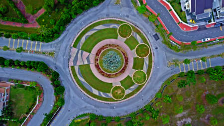 Aerial view from the top of a roundabout in Ipoh, Perak taken by a drone
