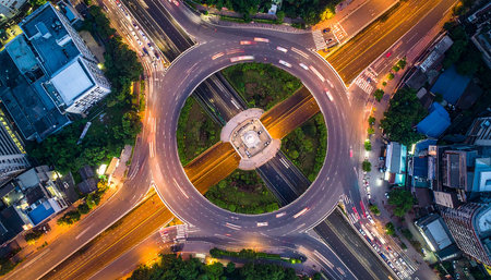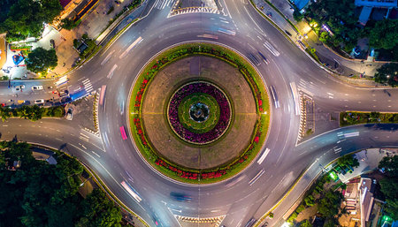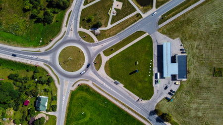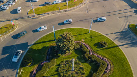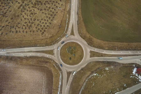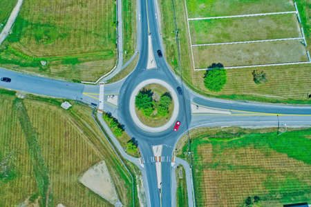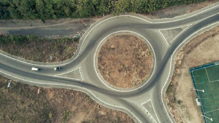 roundabout aerial top view, traffic circle with road circular intersection or junction