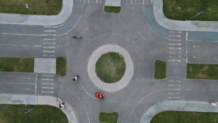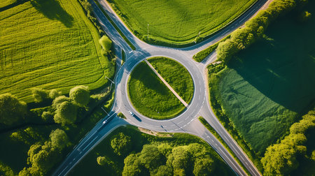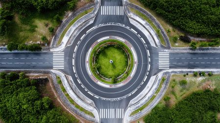Roundabout aerial top view footage from above. Created with Generative AI technology