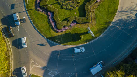 City Road roundabout, Expressway with car and truck. Street Top view. Background, Aerial