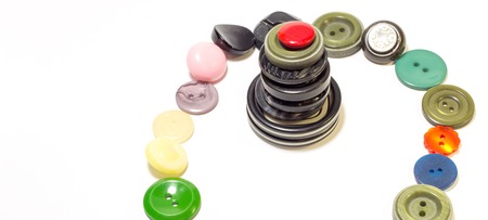 Group photo of colorful buttons used in dressmaking