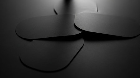 An abstract arrangement of four black oval shapes overlapping on a dark surface, casting soft shadows.