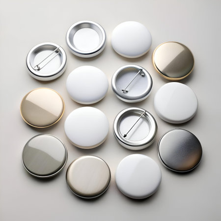 A scattering of blank button badges. perfect for showcasing your designs or branding. Use these high quality images for marketing materials. presentations. or social media.