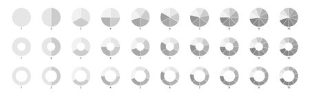Segment slice sign. Pie chart gray icons. 10,2,4,5 segment infographic. Wheel round diagram part symbol. Circle section graph. Three phase, six circular cycle. Geometric element. Vector illustration