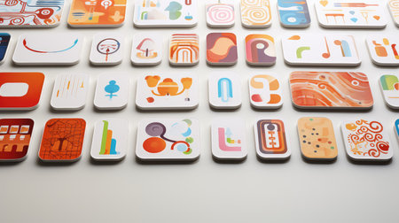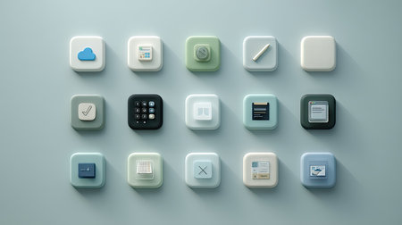 A visually appealing arrangement of colorful and modern application icons with a soft background, showcasing 3D effects and shadows for user interface design.