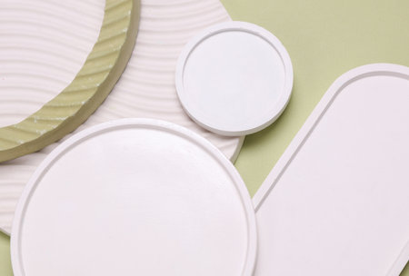 A Colorful plates arranged in modern design on light background