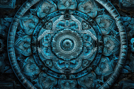 Serene kaleidoscope mandalas in shades of blue with intricate details and mesmerizing patterns