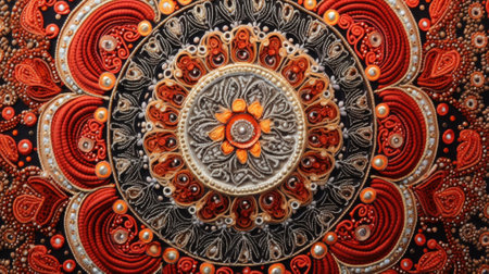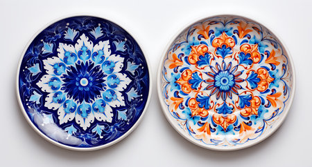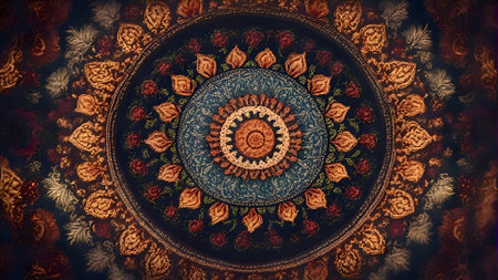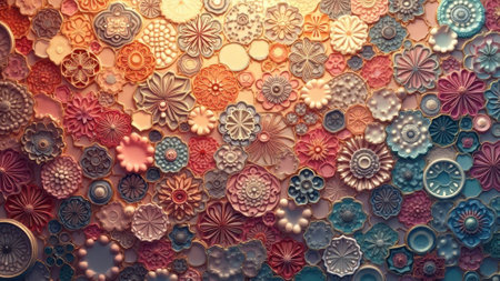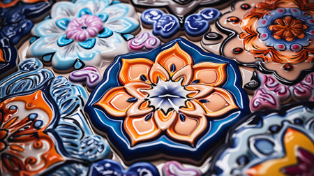 Colorful ceramic floral pattern with intricate geometric designs. That the image is generated using AI.