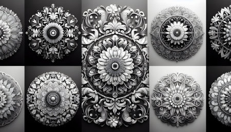 Intricate Mandala Flower Designs in Autumn Colors. Generative AI
