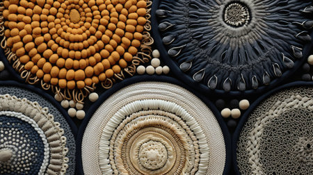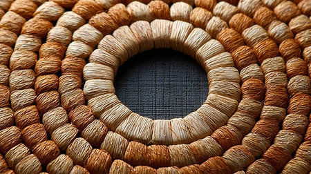 Circular Straw Braiding Texture with Neutral Colors, Handcrafted Weaving Featuring Concentric Rings