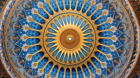 Gold and blue ceiling in a muslim mosque AI Generated Image