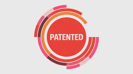 Red circular graphic with segmented rings and the word PATENTED in white text Clear details and vibrant colors...