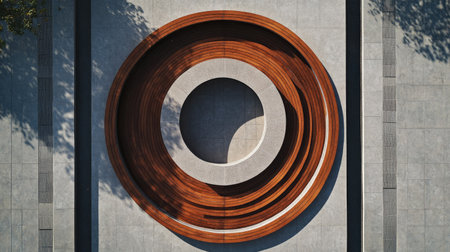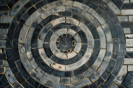 Overhead view of a precise circular stone pattern on the ground, A geometric pattern symbolizing the discipline and focus required in martial arts training