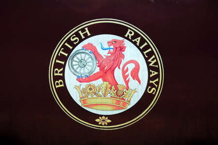 Brownhills West, United Kingdom - May 17, 2014 - British Railways Lion Logo 1956, Brownhills West Railway Station, Staffordshire, England, UK, Western Europe