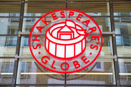 LONDON, UK - MAY 4TH 2016: The sign above the main entrance to Shakespeares Globe - the complex housing a reconstruction of the Globe Theatre in London, on 4th May 2016.