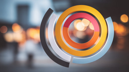 Vibrant abstract circular design featuring overlapping shapes and soft bokeh background. Ideal for modern branding, artistic projects, and graphic designs.