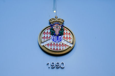 Monte Carlo, Monaco - 12 12 2022: Automobile club of Monaco brand logo and text sign on facade office organizer 1990 acm coat of arms of formula one grand prix