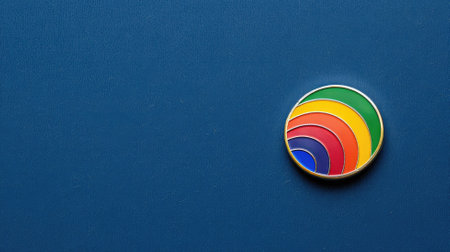 Rainbow pin on blue textured background