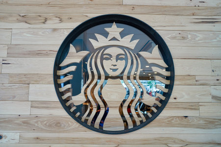 NEW YORK - APRIL 06, 2016: logo of Starbucks Cafe. Starbucks Corporation is an American global coffee company and coffeehouse chain based in Seattle, Washington