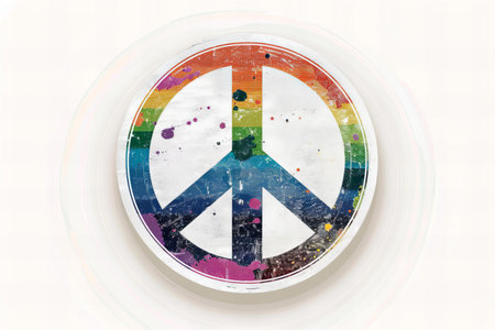 Peace sign on a white background with grunge effect and brush strokes