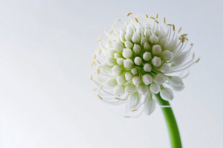 Yorktown onion, Allium pskemense in full bloom with green stem isolated on clean minimalist background. Macro botanical floral closeup