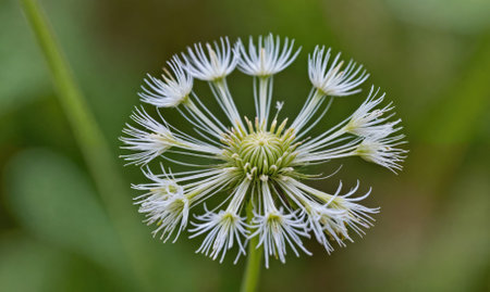 white dandelion flower on green background with bokeh effect