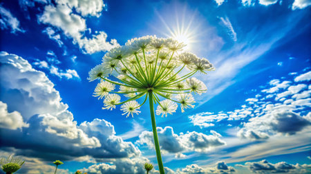 Silhouette of Blooming Flower Against Blue Sky and Clouds - Nature Photography