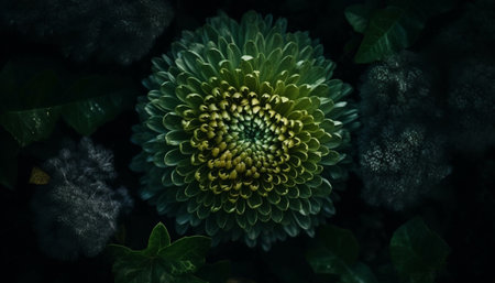 Beautiful green dahlia flower with dew drops on it