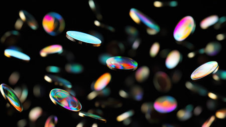 A mesmerizing view of aligned coins arranged in a row on a dark surface illuminated by soft light, symbolizing wealth, investment, and financial prosperity.