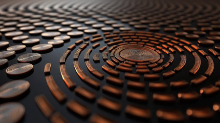 Explore the beauty of abstract art with this stunning design featuring intricate circular patterns in gradient copper and black tones. Ideal for modern aesthetics.