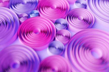 3d illustration of pink and purple circles. Set of shapes on monocrome background, pattern. Geometry background