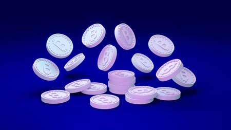 3D Rendering cryptocurrency ฿ coin as referring to blockchain falling on background concept of Decentralized finance. 3D render. 3D illustration.