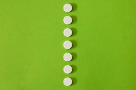 These will keep you on the straight and narrow. Studio shot of a row of white tablets against a green background.