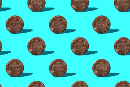 Pattern of US Dollar coins. Pennies dimes and quarter coins from USA. Money background