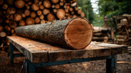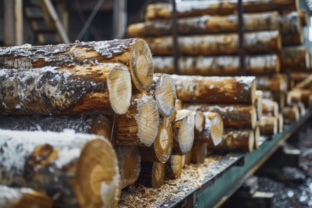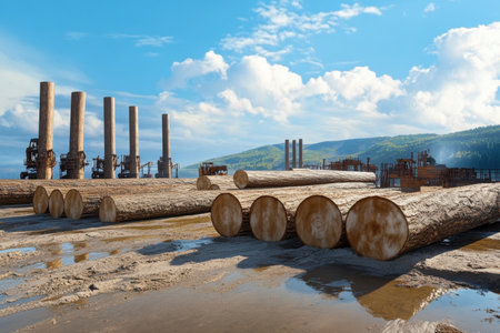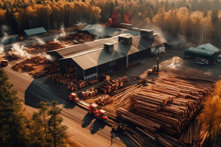 A bustling sawmill is a hub of the timber industry, where raw logs, a valuable forest resource, await transformation From lumber for construction to wood for woodworking projects, the sawmill is a vital source for timber products The rhythmic hum of machinery and the scent of fresh wood fill the AI Generative
