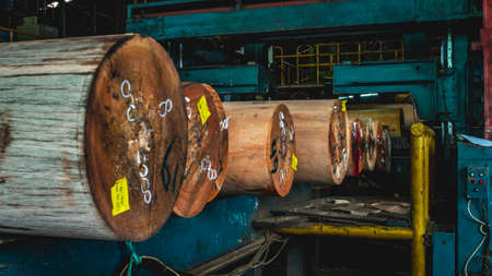 Log of timbers being processed as the raw material for plywood manufacture industry