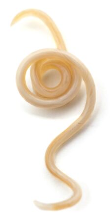 White roundworm parasite isolated on a white background.