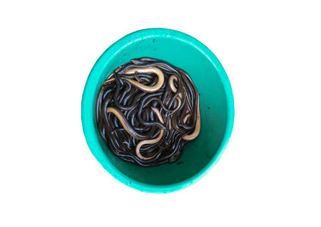 swamp eel images in basin isolated on a white background