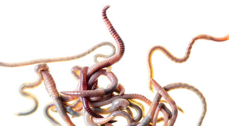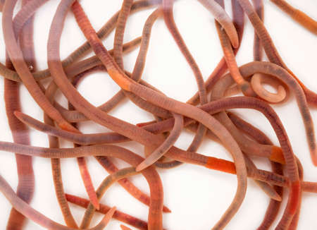 Close up of Earthworms on a white background.