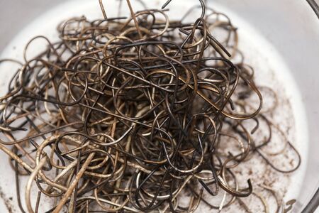 pile of rusty metal wire hooks