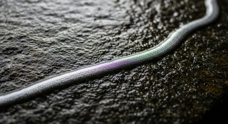 Detailed and intricate representation of snake like creature, featuring glossy texture and glowing elements, set against soft focus background of organic shapes. image evokes sense of wonder