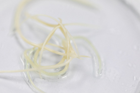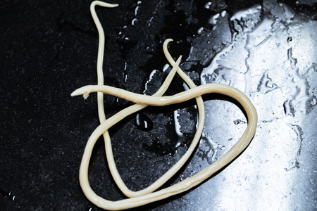 White roundworm parasite isolated on a white background.